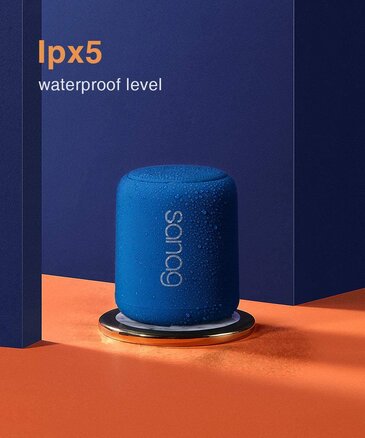 תיאור רמקול מיני בצבע כחול, מוגן מים IPX5, בשידור בלוטוס V5 לכל מטרה
